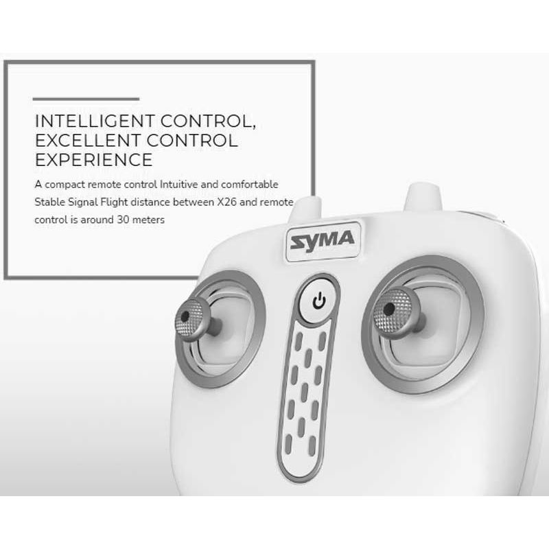 Syma Radiostyrd Tennisdrönare Bumper X26 med automatisk start och landning, den har också auto hovering, kan stå stilla helt i luften. Den kan flyga i alla riktingar och göra loopar.