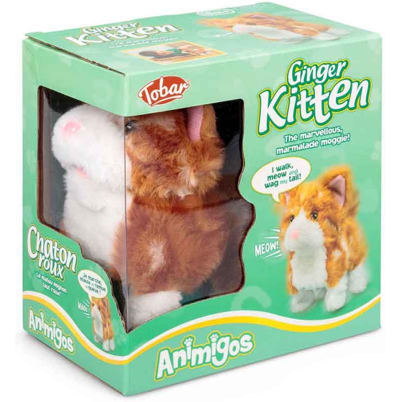 Animigos Ginger Kitten. Rödbrun Interaktiv Kattunge Animigos, en bedårande rödbrun kattunge som går framåt, rör svansen, tittar uppåt och jamar. Längd: 17 cm.