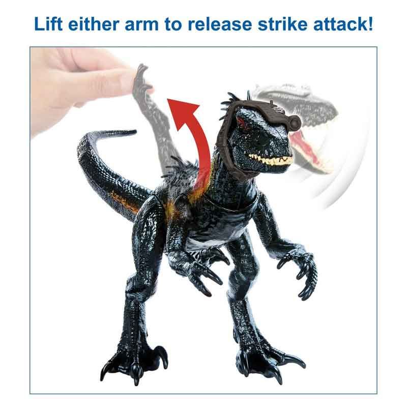 Jurassic World Track N Attack Indorraptor, en superhäftig dinosaurie till barnens dinosaurielekar. Väldigt fina detaljeroch roliga funktioner. Gggrrhhh! En dinosaurie med ljud, rörelser och med röda lysande/blinkande ögon! Utgått, se andra dinosauriefigurer, klicka här.