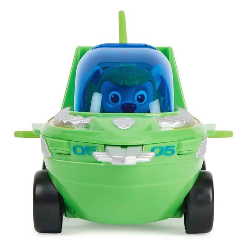 Rocky som har på sig sin gröna Aqua Pups-våtdräkt och -hjälm är redo för superladdade räddningar i låtsashaven!