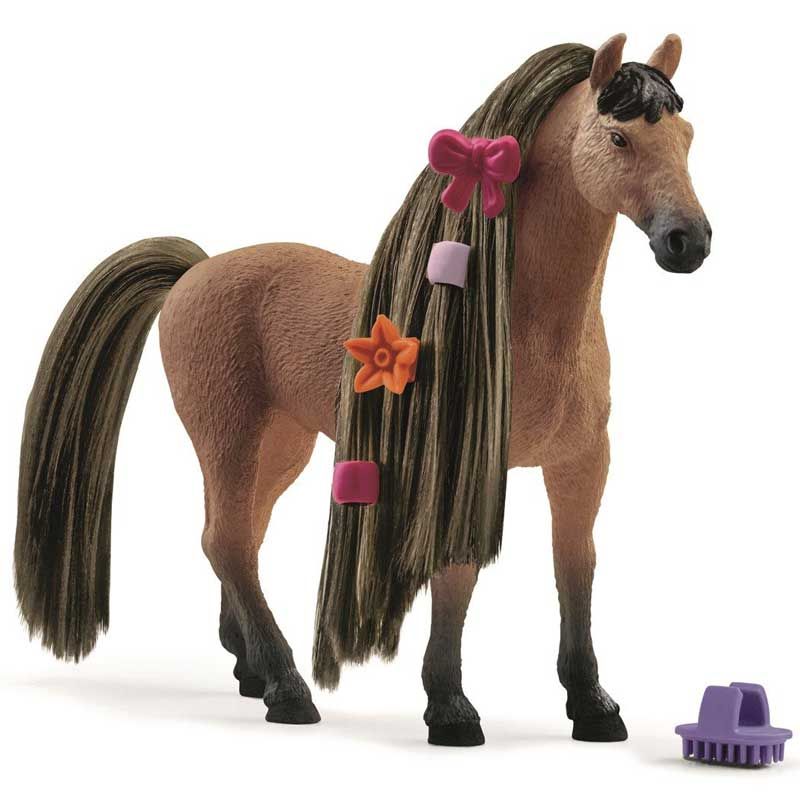 Den magnifika Beauty Horse-akhaltekeerhingsten har den typiska sandfärgade pälsen för sitt hem i öknen. Men han har inte alltid varit lika noga med sin skötsel. Nu när han är med dig kan du ge ägna all uppmärksamhet åt hans vackra långa man! Utgått, se andra leksaker, klicka här.