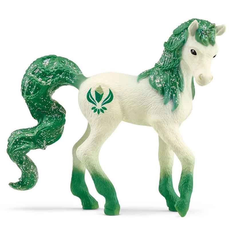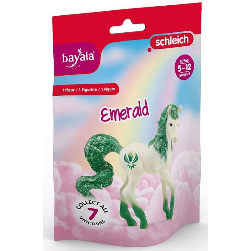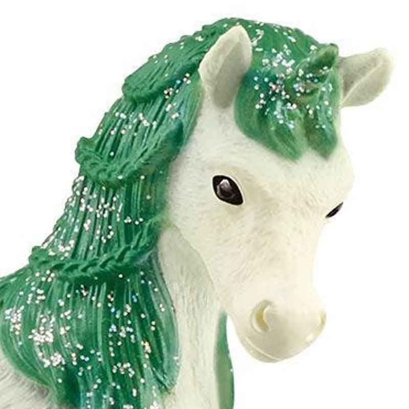 Man, svans och hovar är gröna för att matcha smaragdens färg. Och bäst av allt: Det är en samlarenhörning. Tillsammans med de andra kristallenhörningarna lever den i den vackraste flocken i hela BAYALA®.