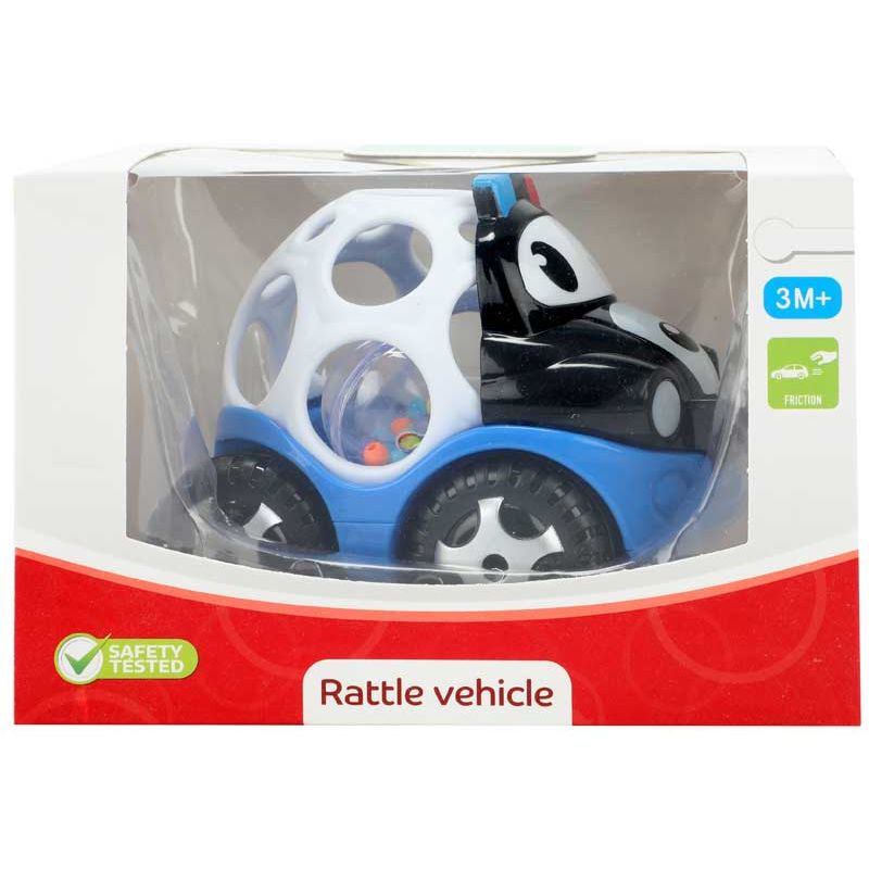 Skojig leksaksbil med Polis-Tema och en skallra som är fäst ovanpå bilen. Leksaksbilar är alltid lika roligt att leka med och denna bilen är extra rolig med behållare som innehåller en genomskinlig boll med små kulor inuti.