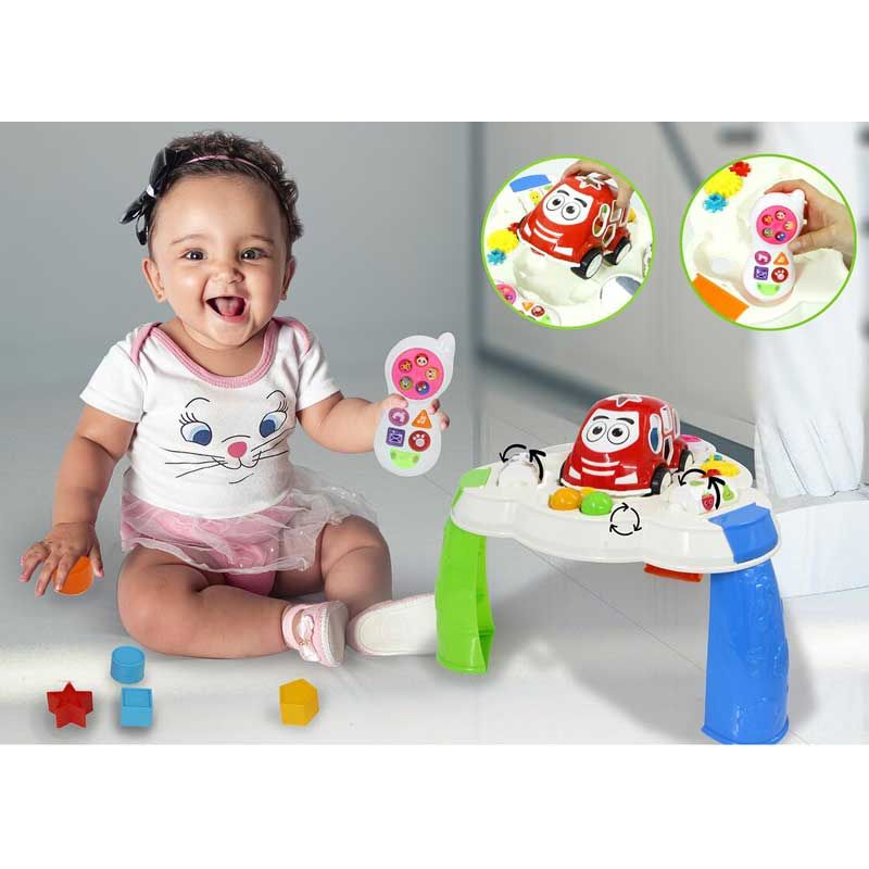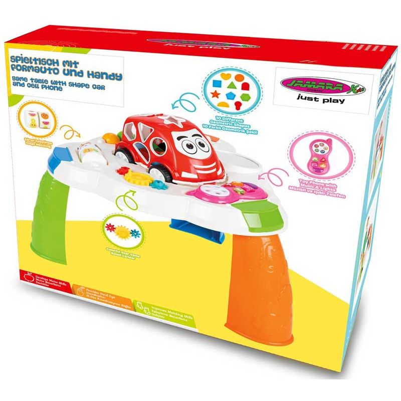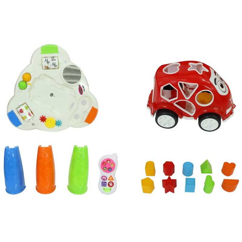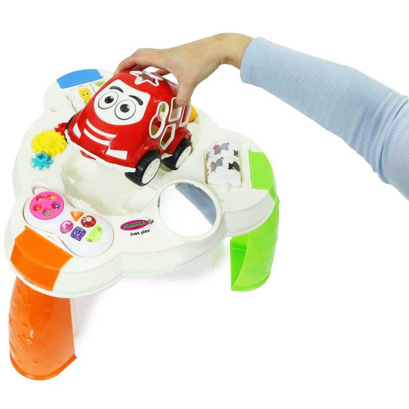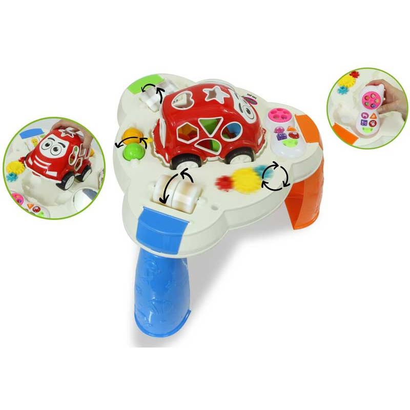 Aktivitetsbord i färgglada färger, med ett aktivitesbord får barnen mycket roliga saker att hitta på. De kan trycka, snurra, vända på olika former och delar. Med plockbilen kan de sortera klossar. Med telefonen kan de spela musik och lyssna på olika djurläten. Aktivitetsboprdet är också utvecklande för barnen då de får träna upp hand-öga koordinationen och deras finmotorik. Utgått, se andra babyleksaker, klicka här.