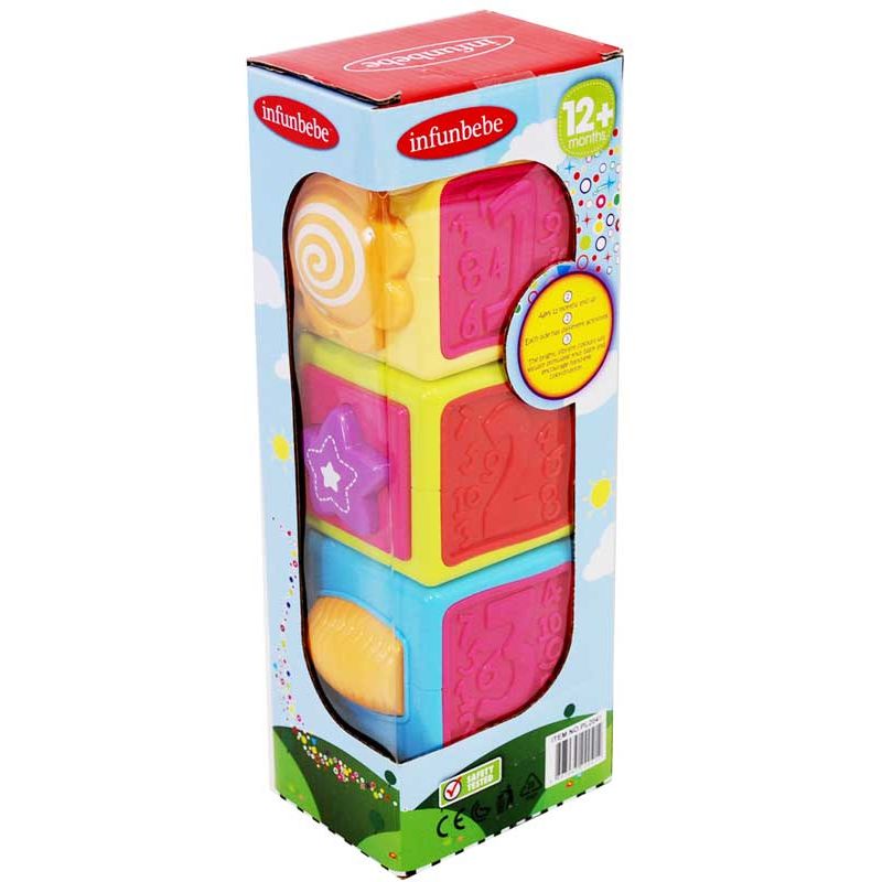 Skojiga och utvecklande lekklossar, stapelklossar Baby Infunbebe. Nu kan barnen stapla dessa på varandra och sedan riva ned det igen, om och om igen. På klossarna finns också bokstäver, siffror och olika former med mera. Roligt att leka med men också för att stimulera och utveckla barnens sinnen och motorik. Utgått, se andra babyleksaker, klicka här.