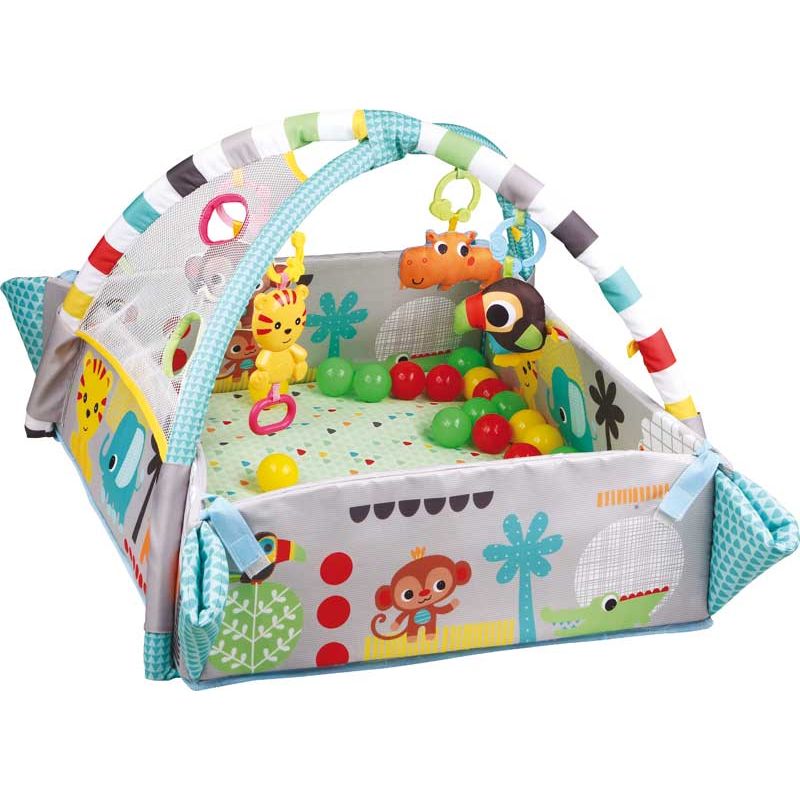 Babygym 5-i-1 och lekmatta Baby Buddy, ett fantastiskt fint babygym där nyfikna bebisar blir aktiverade. Babygymmet med en båge innehåller bollar, mjuka väggar, stödkudde för magen, skallror mm.