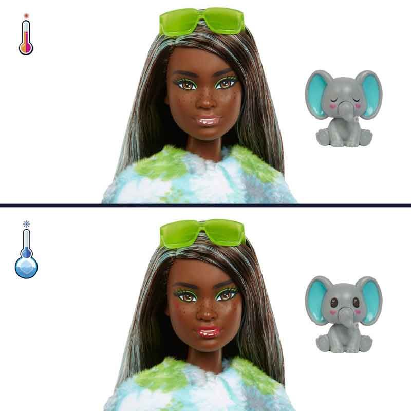 Använd iskallt vatten för att förvandla Barbie® dockans ansikte med djungelkul ansiktsmålning och för att "öppna och stänga" minidjurets ögon. Byt tillbaka med varmt vatten. Upprepa igen och igen!