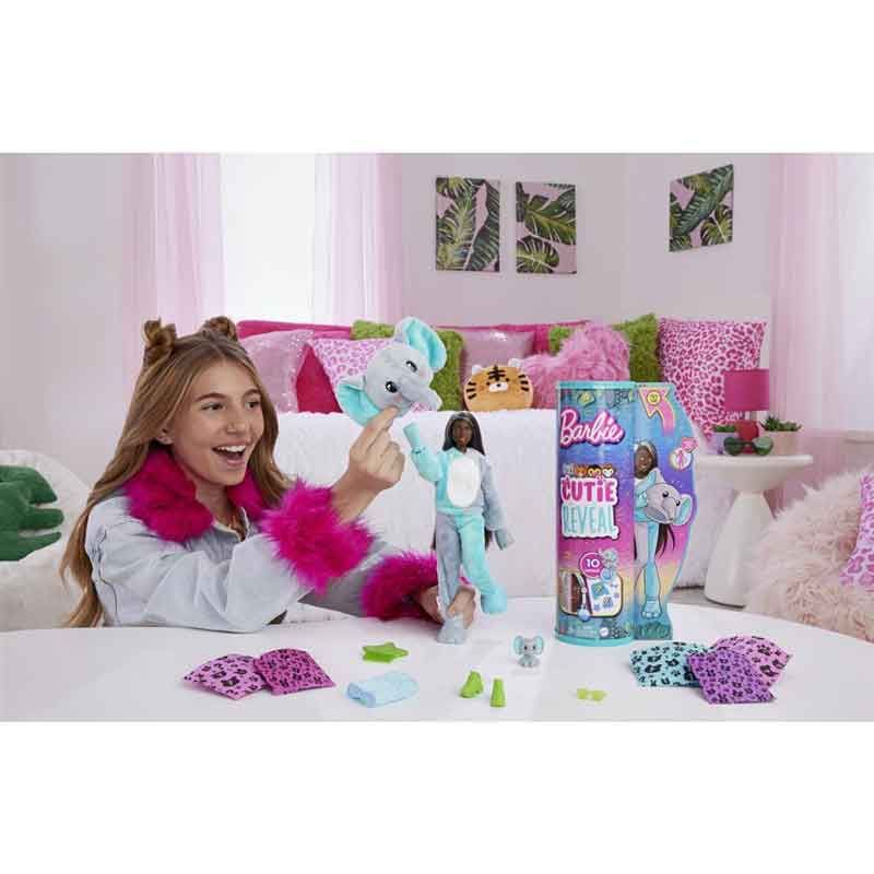 Barn kommer att gilla att upptäcka alla söta överraskningar i denna djungelinspirerade Barbie® Cutie Reveal™-serie.