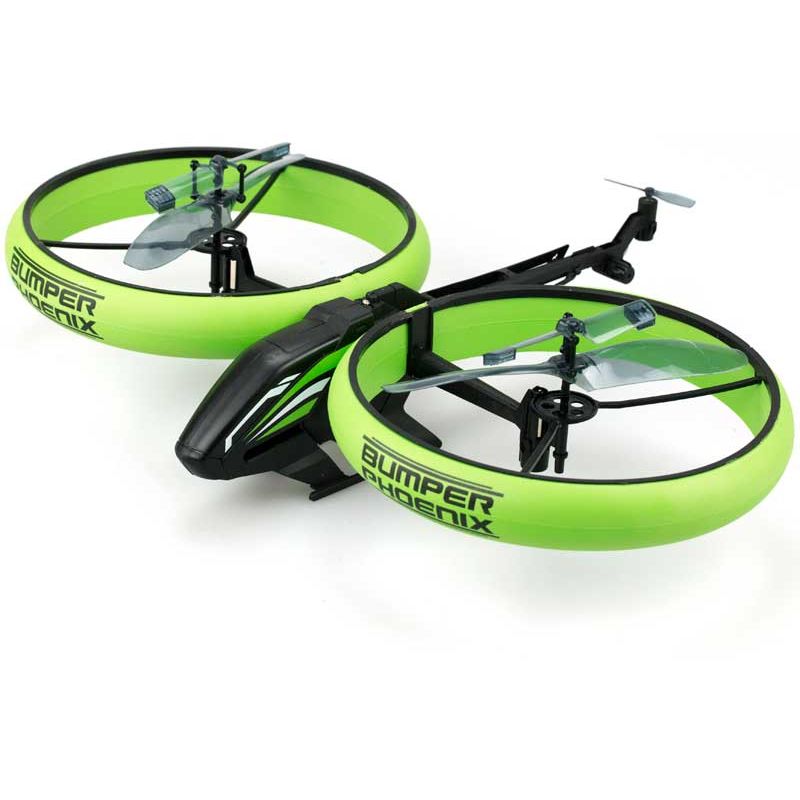 Silverlit Radiostyrd Drönare Helikopter Bumper Phoenix, en jätterolig radiostyrd helikopter med två runda ringar. Flybotic Bumper Phoneix är en hybrid av en helikopter och drönare. Utgått, se andra radiostyrda leksaker, klicka här.