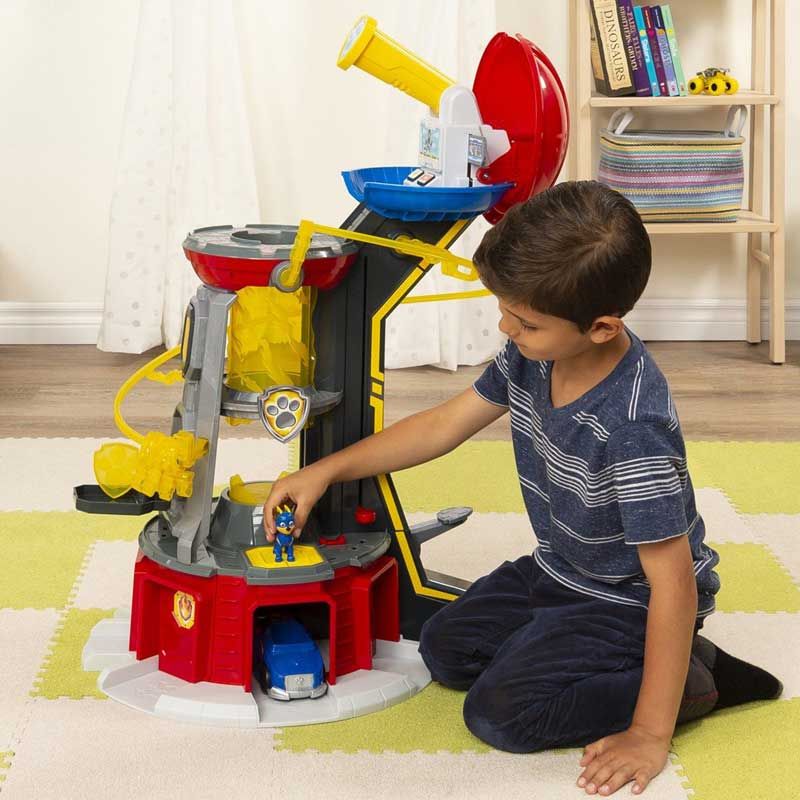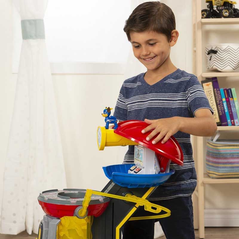 När problem upptäcks, tryck på knapparna på uppdragets kontrollpanel för att aktivera riktiga ljus och ljud, och hör Ryder ge valparna ett uppdrag. Det finns plats för alla sex Mighty Pups-fordon (säljs separat) i basen av Mighty Lookout Tower.