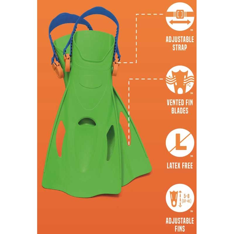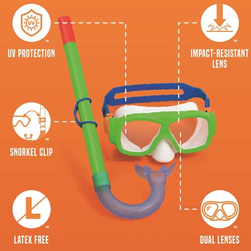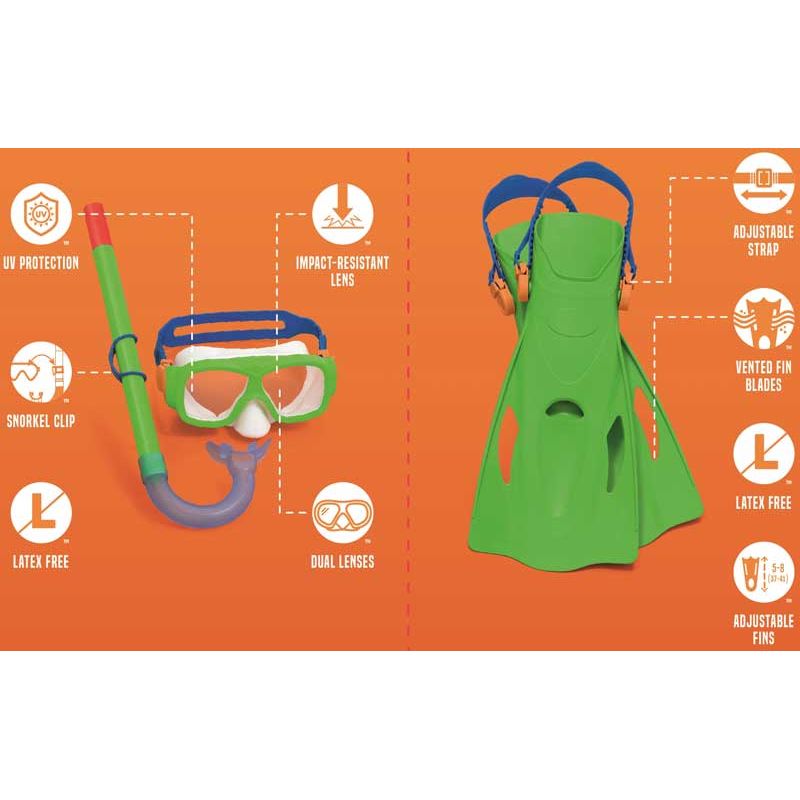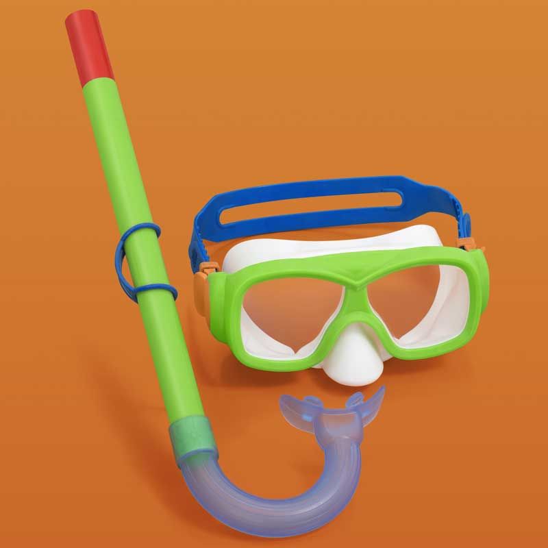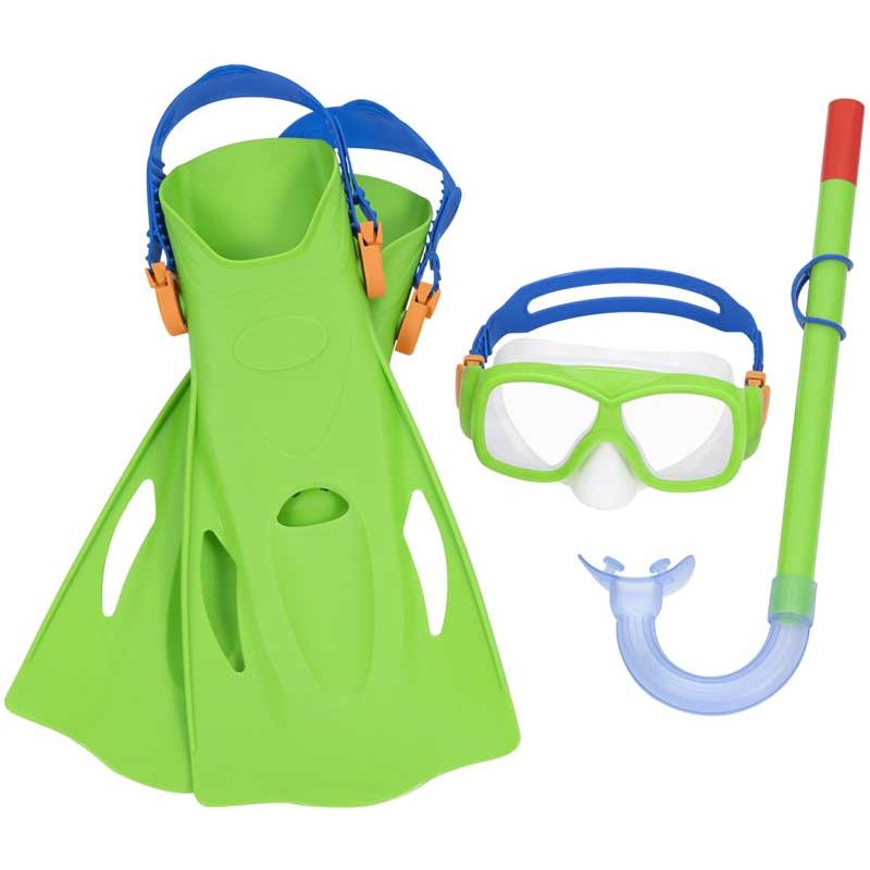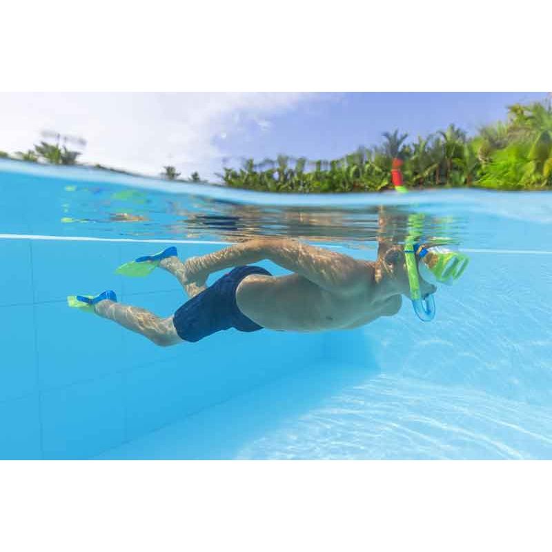 Snorkelset Freestyle blå för barn, det är ju alltid lika kul att se vad som finns under vattenytan. Med simfötter, cyklop och snorkel kan man utforska botten i sjön, havet eller varför inte i poolen om man har en hemma.
