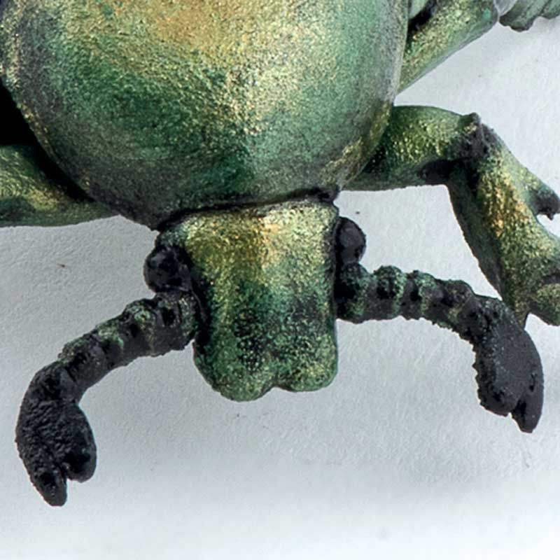 Papo Gräsgrön Guldbagge Leksaksdjur, European rose chafer. Denna skalbagge kallas också för guldsmed och är en skalbagge till underfamiljen guldbaggar. Dess färg är metalliskt grönglänsande, med vita svag streck på täckvingarna. Den kan bli upp till ca. 2 centimeter lång. Den äter ofta nektar och man kan ofta få syn på den på blommor. Den gillar också att flyga runt i solskenet :). Längd: 4 cm.