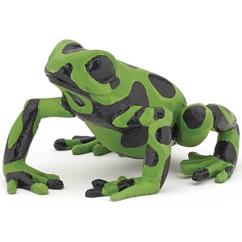 Papo Grönsvart Pilgiftsgroda. Pilgiftsgrodorna är inhemska i Centralamerika och Sydamerika. Grodans skarpa färger är ett sätt att signalera dess giftighet. Längd: 3 cm. Utgått, se andra leksaksdjur, klicka här.