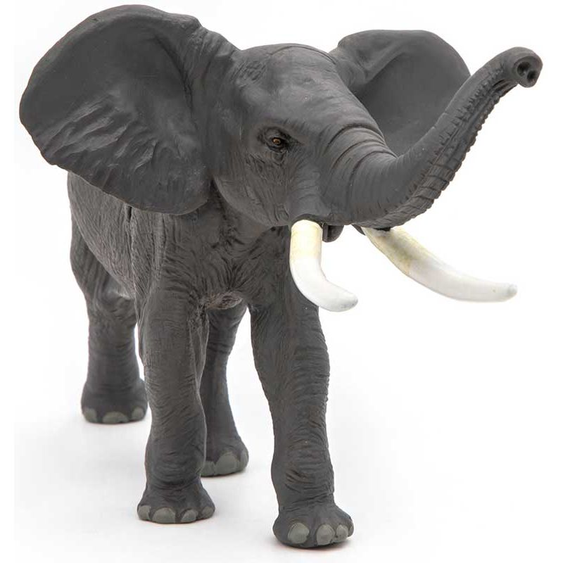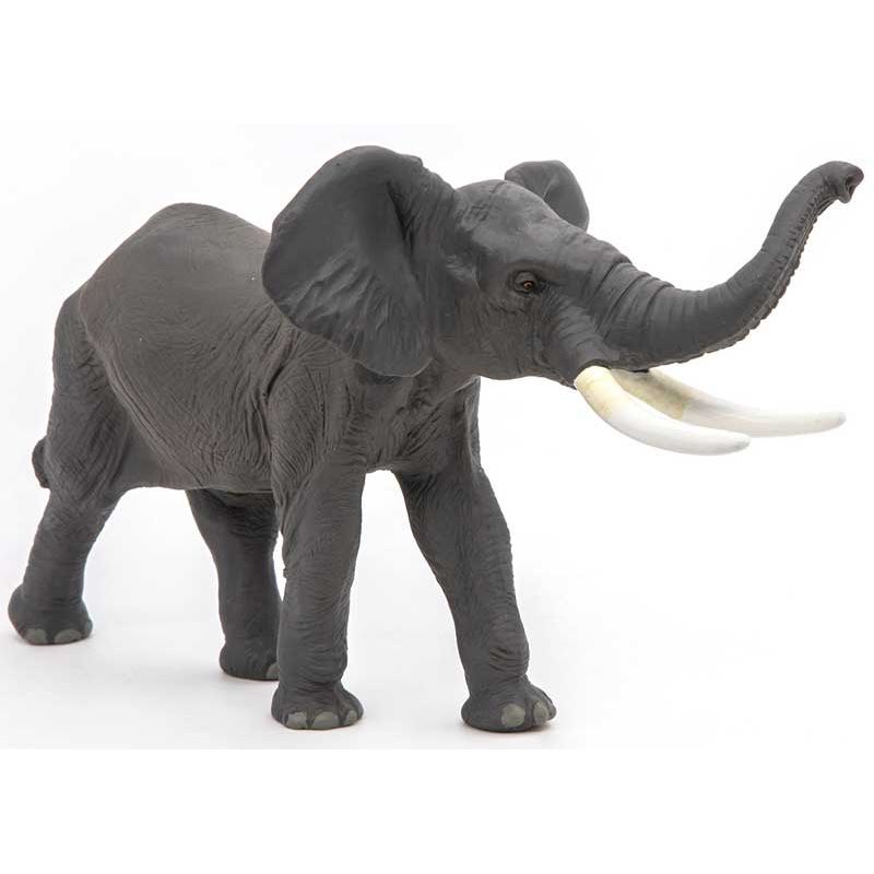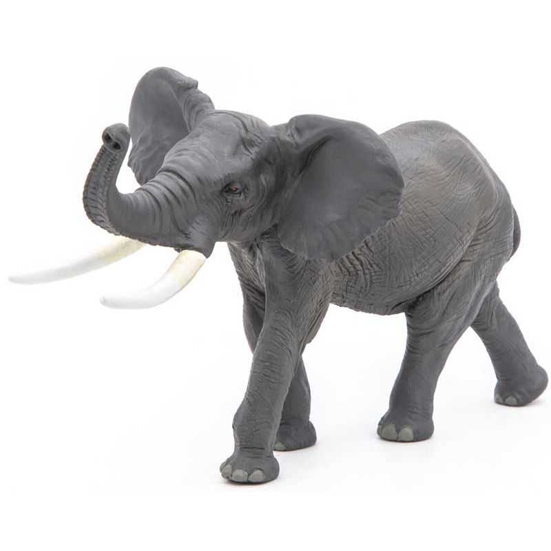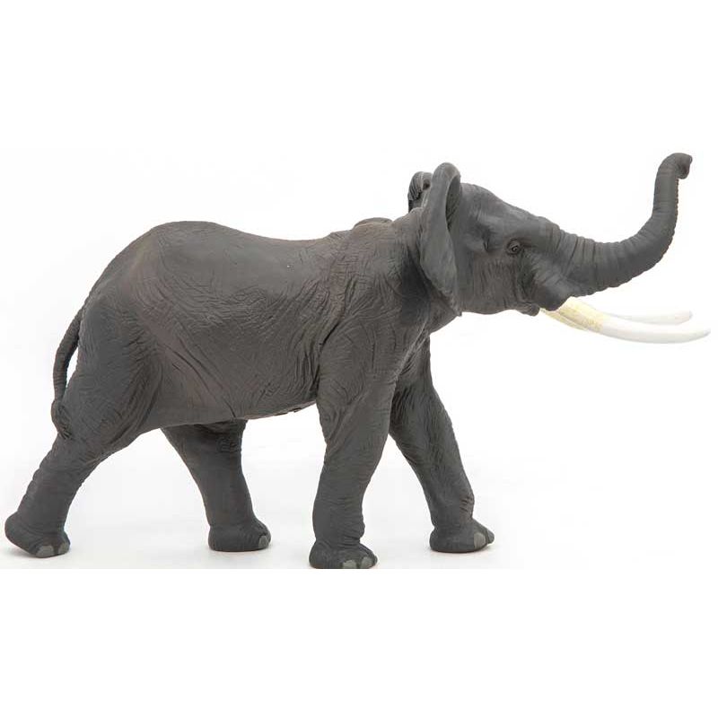 Papo Elefant afrikansk trumpetande. Den afrikanska savannelefanten är världens största, landlevande däggdjur. Den lever i sociala grupper organiserade runt honor och deras kalvar. Längd: 19 cm. Utgått, se andra leksaksdjur, klicka här.