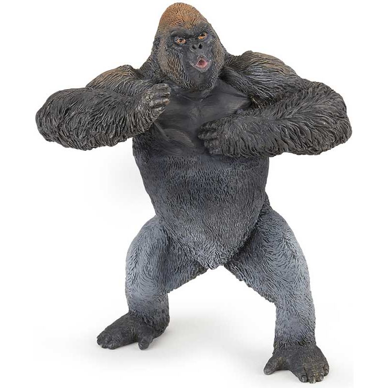 Papo Gorilla Stående Mountain gorilla. Gorillan är växtätande och håller till i Afrika. De är den största av apdjuren, med lika lång kropp som en människa, men avsevärt tyngre. Höjd: 12 cm. Utgått, se andra leksaksdjur, klicka här.