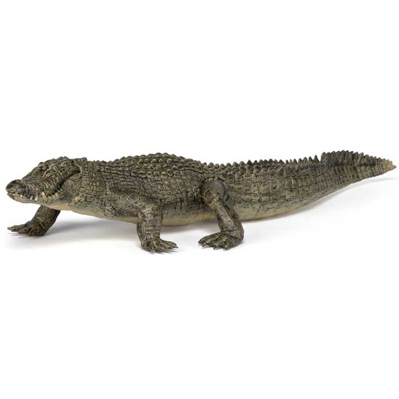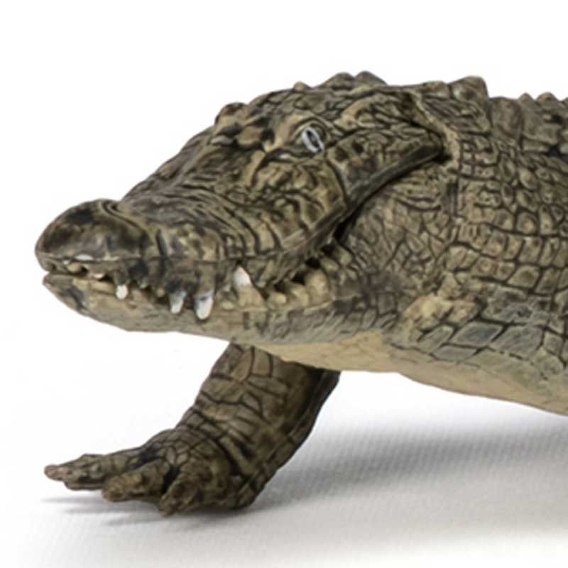Papo Alligator. Alligatorer är ett släkte inom familjen krokodildjur. Alligatorerna skiljer sig från krokodilerna genom att alligatorernas huvuden är bredare och kortare, deras käkar är mer U-formade än krokodilernas och deras käkleder är kraftigare. Längd: 19 cm.