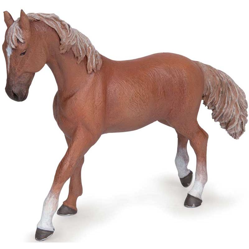 Papo Engelsk fullblod fux. Det engelska fullblodet är en hästras som härstammar från England under 1600- och 1700-talet och som helt framavlats av människan. Längd: 15 cm. Utgått, se andra figurer, klicka här.