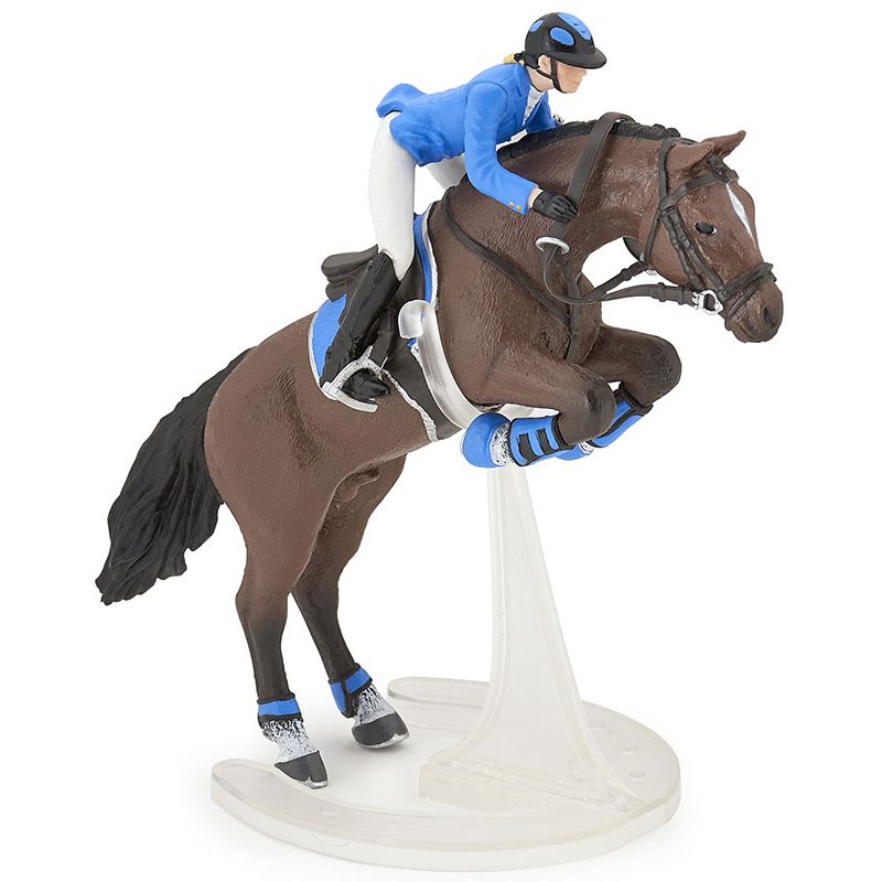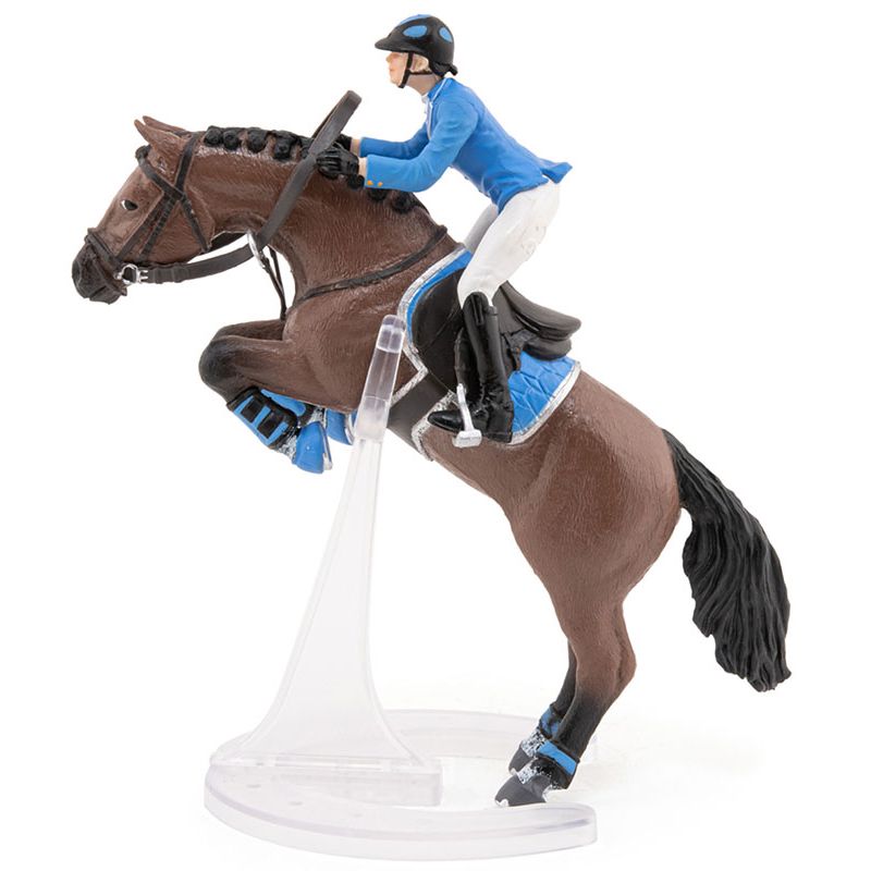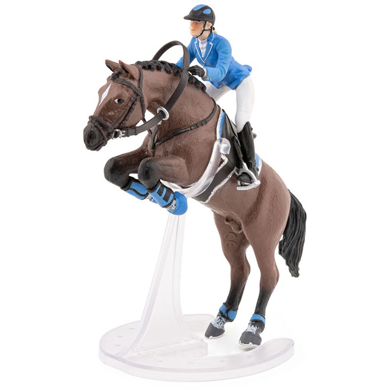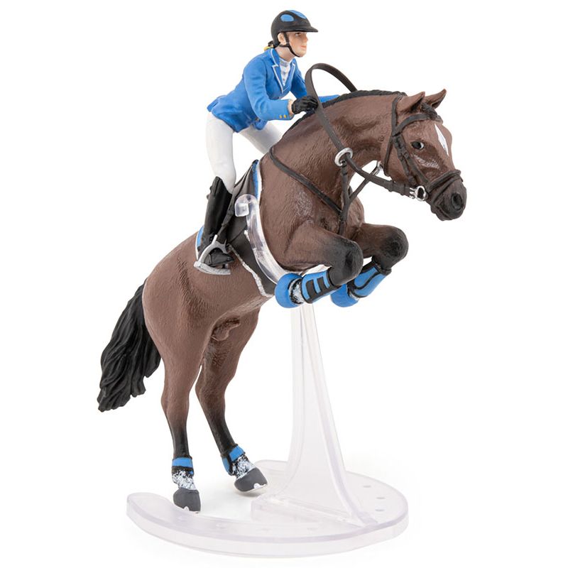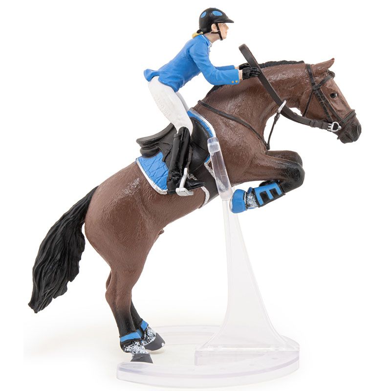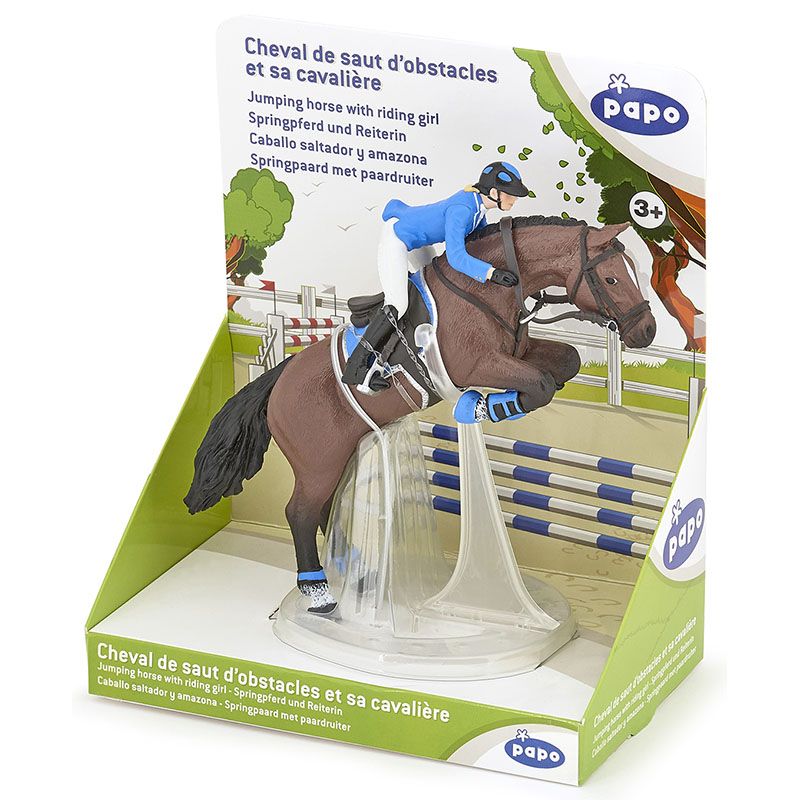Papo Hoppande Oldenburgare med tävlingsryttare dam. Oldenburgaren är en hästras som började utvecklas under 1600-talet i Tyskland.