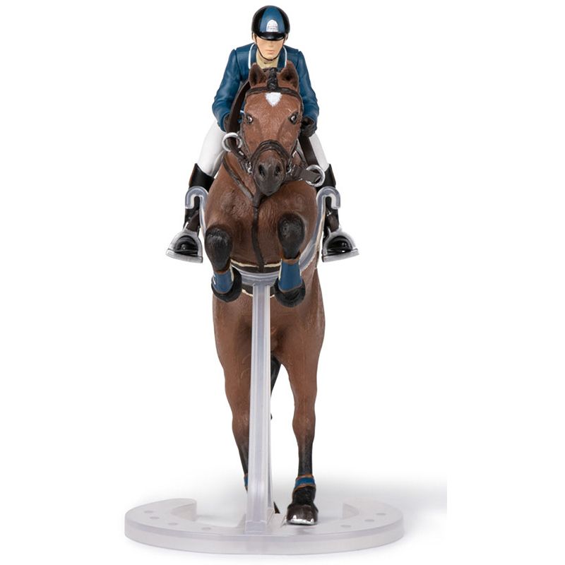 Papo Hoppande Oldenburgare med tävlingsryttare herr. Oldenburgaren är en hästras som började utvecklas under 1600-talet i Tyskland.