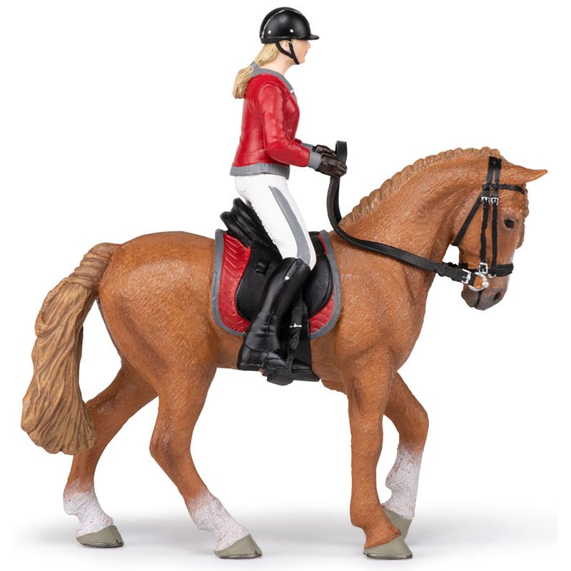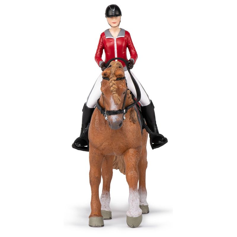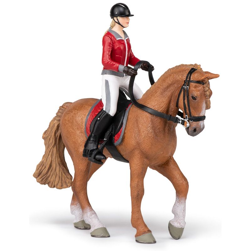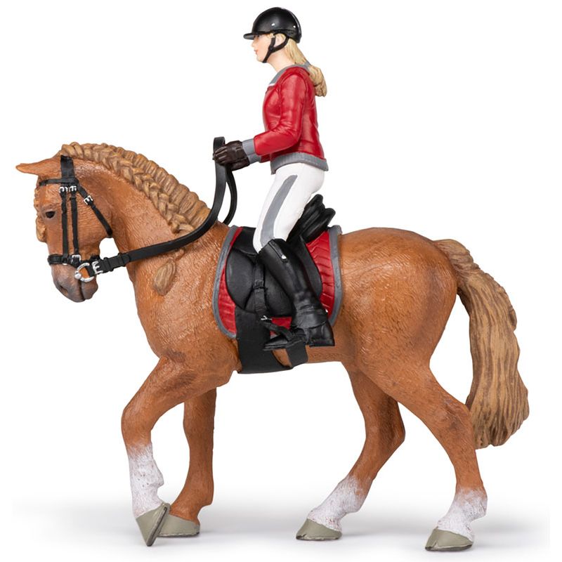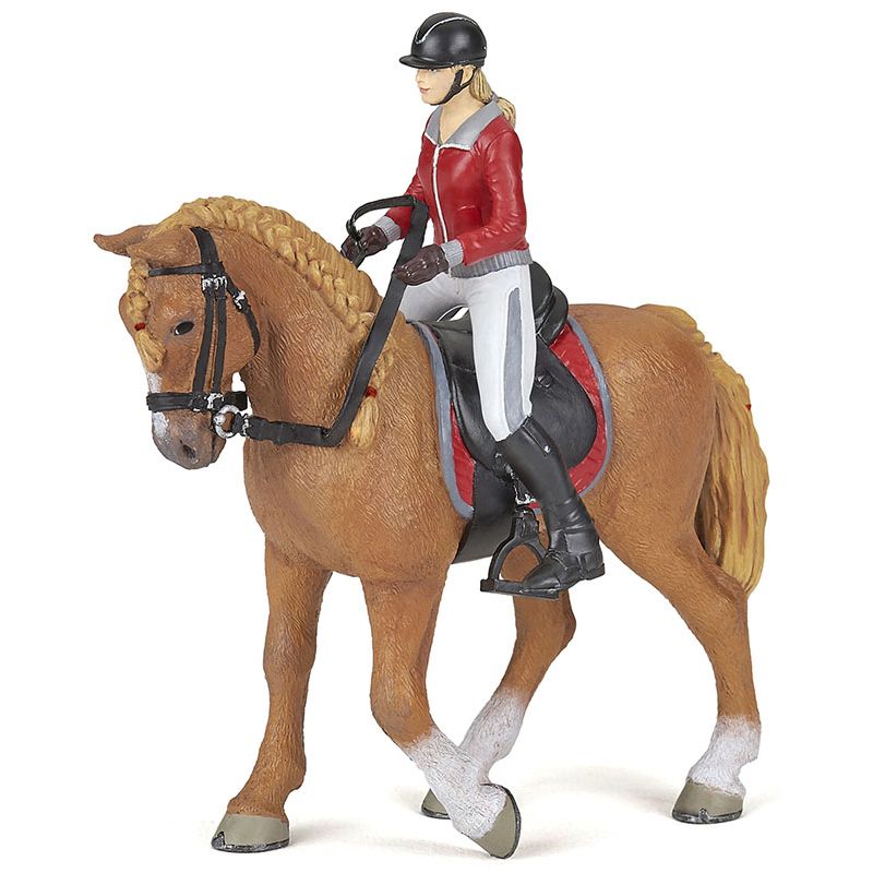 Papo Irish draught med ryttare dam. Irish draught, eller den irländska körhästen, har under många århundraden fötts upp på Irland genom att man korsade inhemska ston med stora, tunga kallblodshästar. Längd: 16 cm. Utgått, se andra leksaksdjur, klicka här.