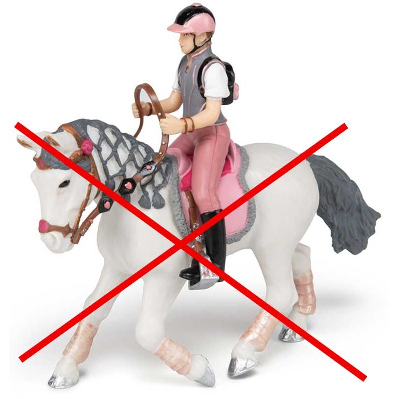 Papo Ryttare grå väst med rosa detaljer och rosa ridbyxor. En ryttare i sportiga kläder, med gammelrosa ridbyxor, vit t-shirt, grå väst och svarta ridstövlar. Och hjälm, förstås. Papos ryttare passar alla Papo-hästar - med eller utan sadel. Utgått, se andra leksaksdjur, klicka här.