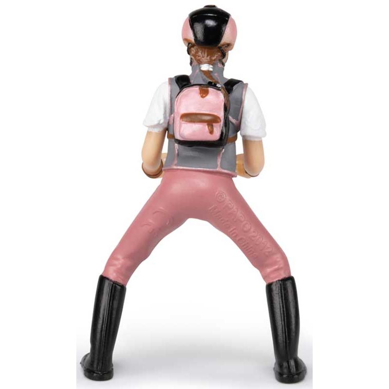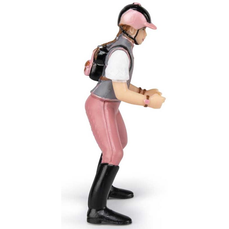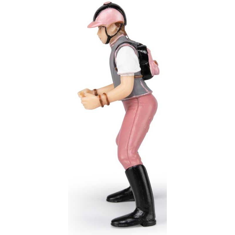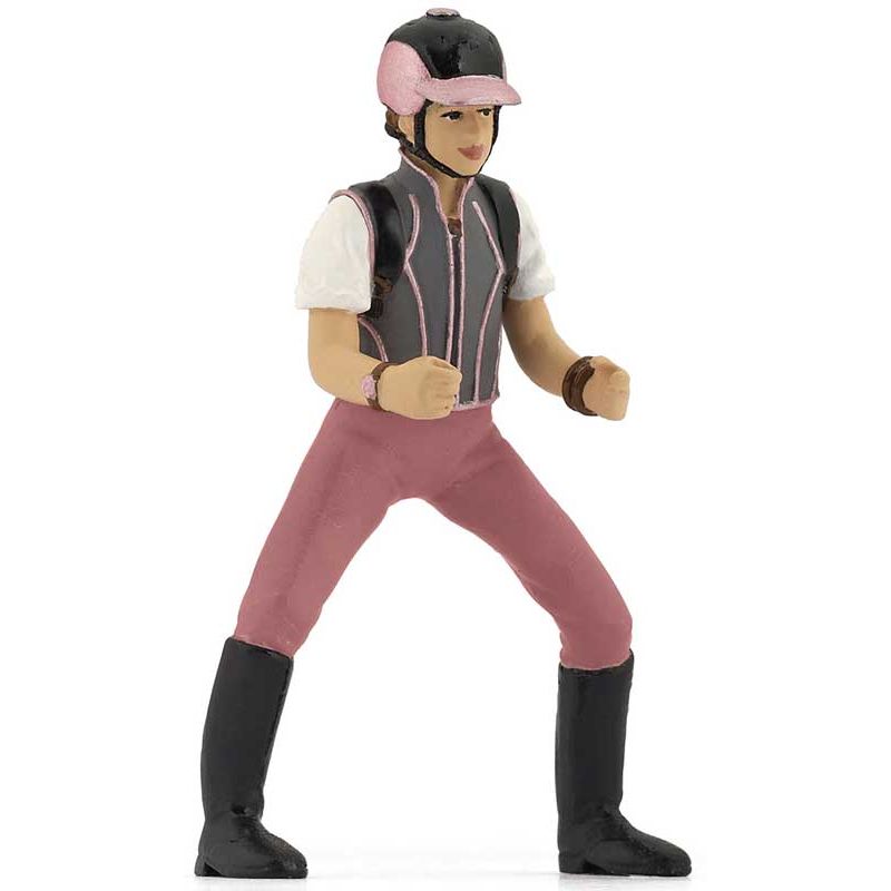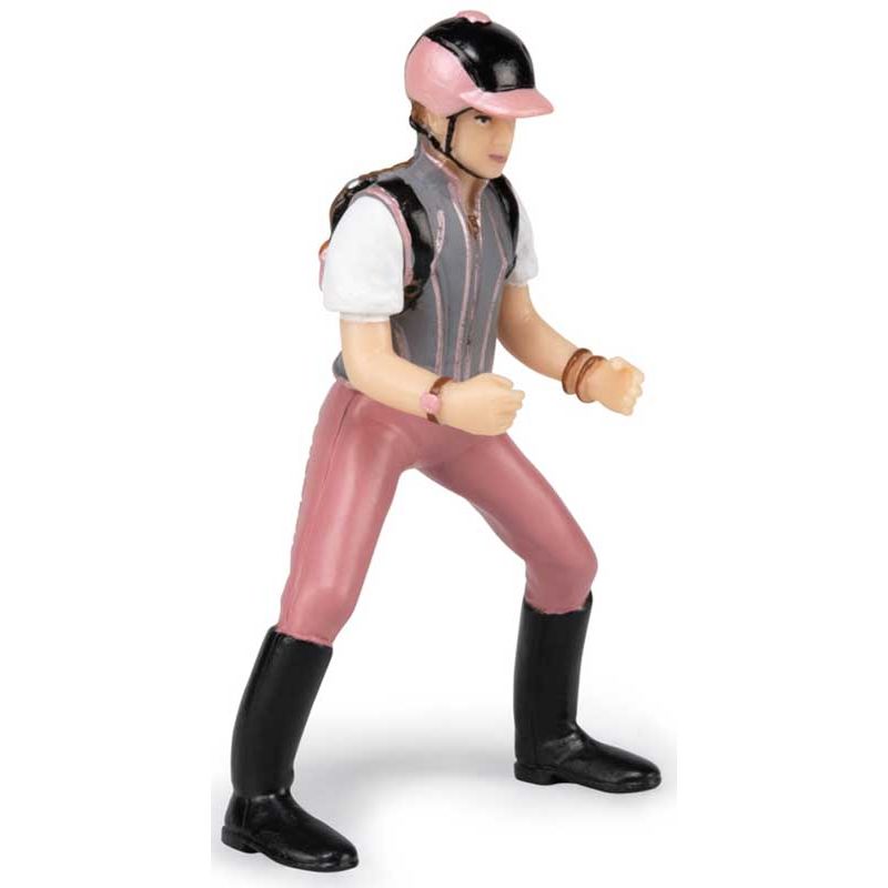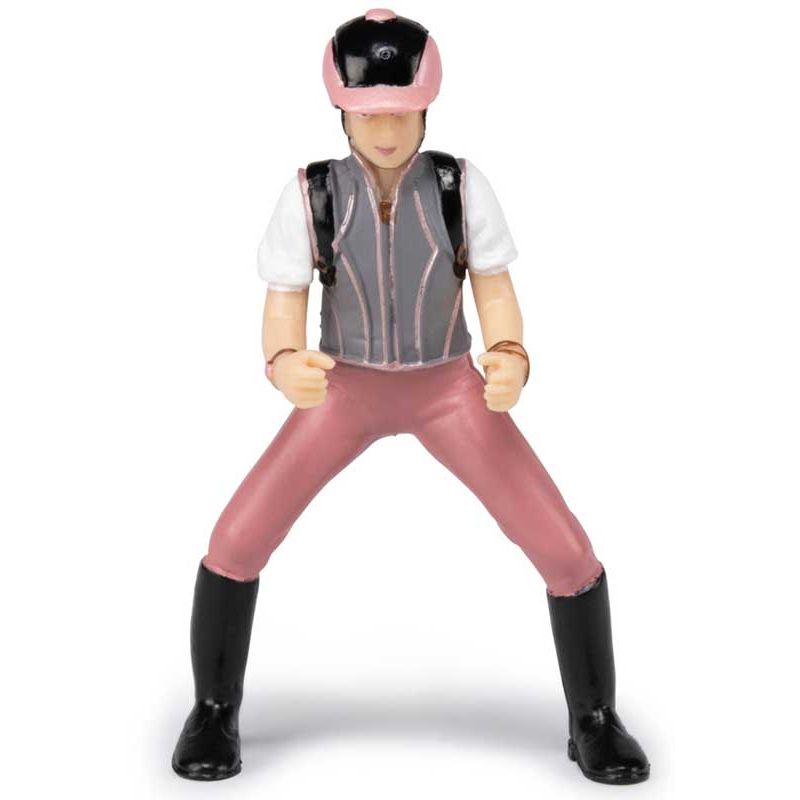 Papo Ryttare grå väst med rosa detaljer och rosa ridbyxor. En ryttare i sportiga kläder, med gammelrosa ridbyxor, vit t-shirt, grå väst och svarta ridstövlar. Och hjälm, förstås. Papos ryttare passar alla Papo-hästar - med eller utan sadel.