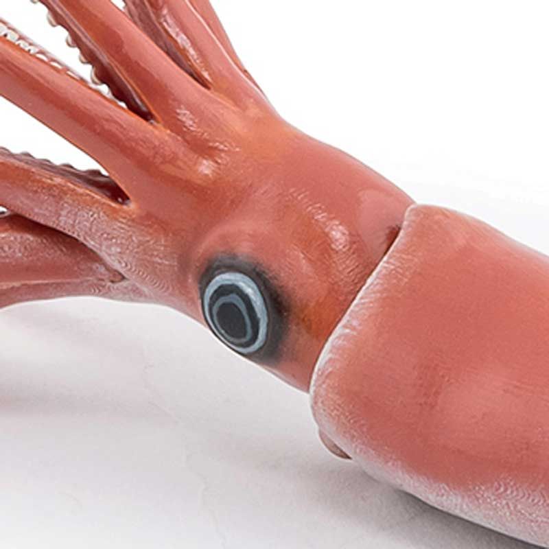 Papo Jättebläckfisk. Jättebläckfiskarna är de största kända ryggradslösa djuren. Man har funnit jättebläckfiskar med en kropp på 4 meter och fångsttentakler på 13 meter. Vikten kan uppgå till 1 ton. Munnen, som liknar en papegojnäbb, sitter inne mellan armarna och är mycket stark. Längd: 23 cm. Utgått, se andra leksaksdjur, klicka här.