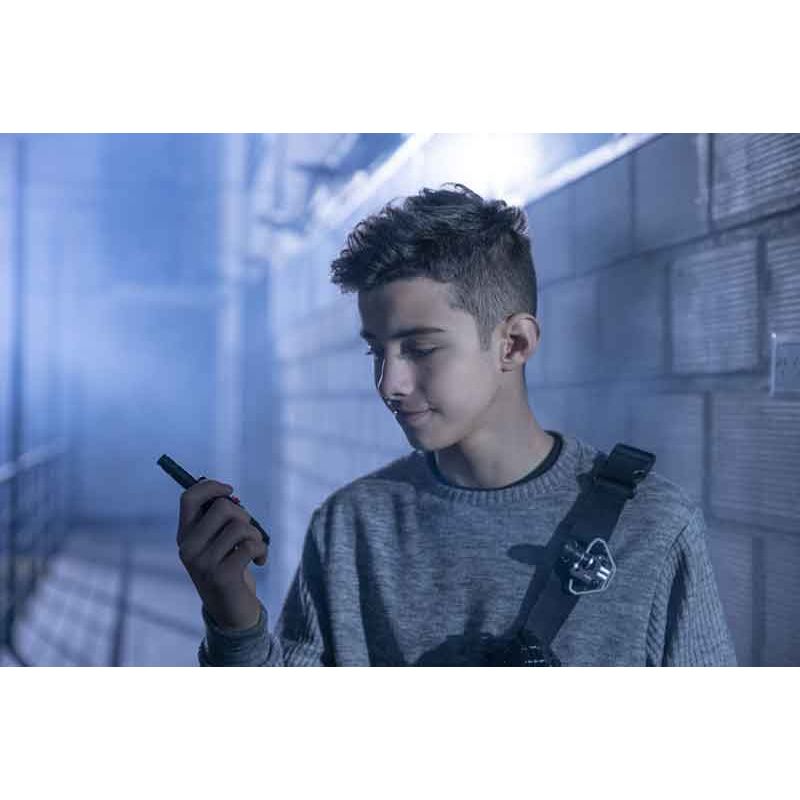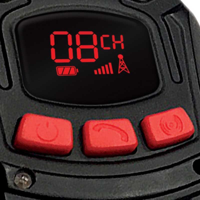 Kommunicera genom att hålla in knappen och prata. Walkie Talkie med en räckvidd på upp till ca. 80-100 meter.