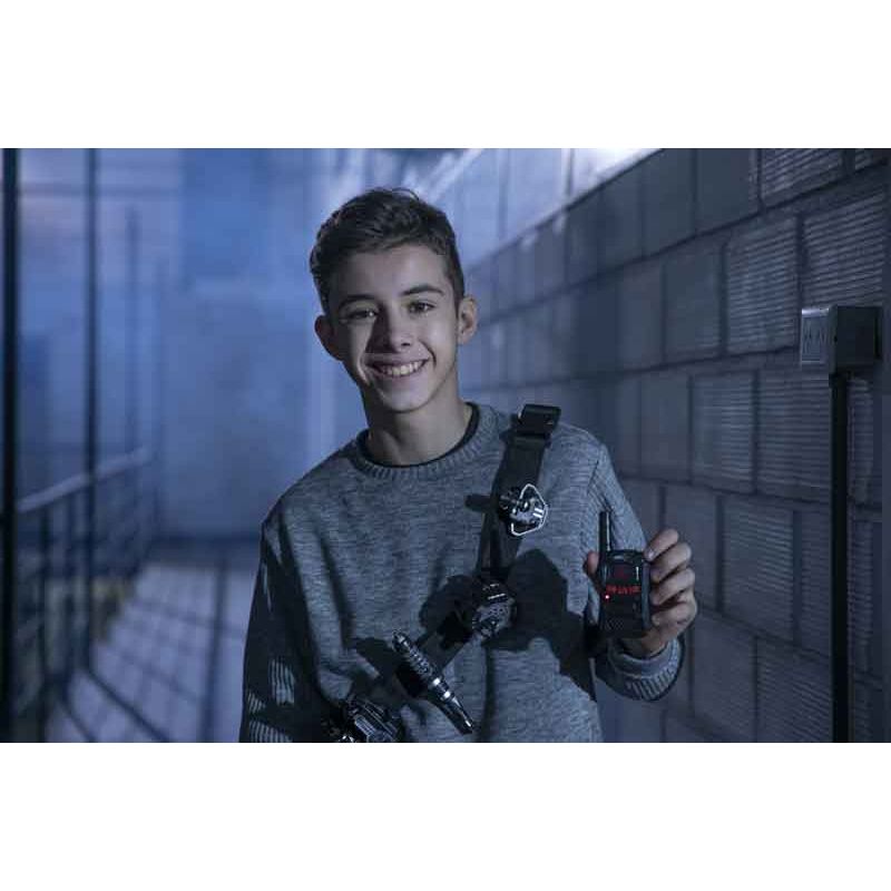 Med dem till hands undviker ni bakhåll eller kan planera ert nästa drag. SpyX walkie-talkies har en räckvidd på upp till 30 meter och har en medföljande bältesklämma.
