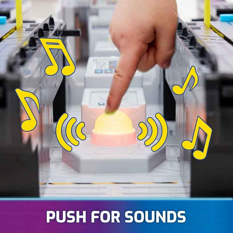 För att avslöja en meteorkärna som lyser och aktiverar ljud när du trycker på den, och sedan öppnar fyra fackdörrar för ytterligare lekområden och förvaring av leksaksbilar, tillbehör och actionfigurer!