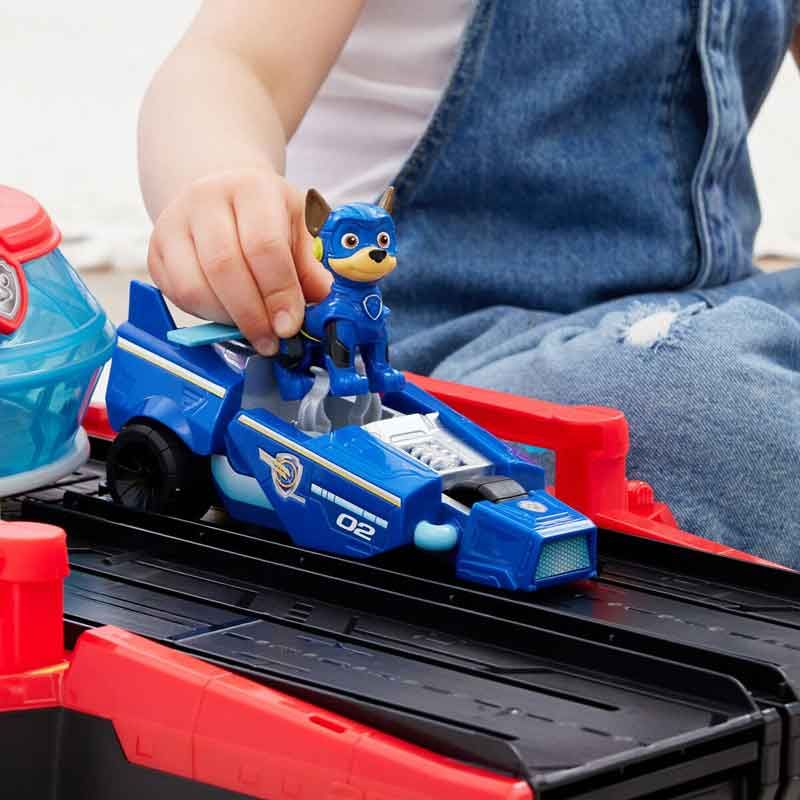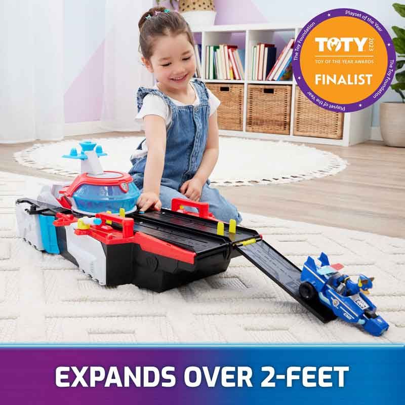 Vi introducerar PAW Patrol Aircraft Carrier HQ! Det unika förvandlingsbara hangarfartyget är perfekt för spännande räddningsuppdrag på låtsashaven och levereras med en äkta PAW Patrol: The Mighty Movie Chase action-figur och Chases autentiska räddningsfordon i form av en polisbil!