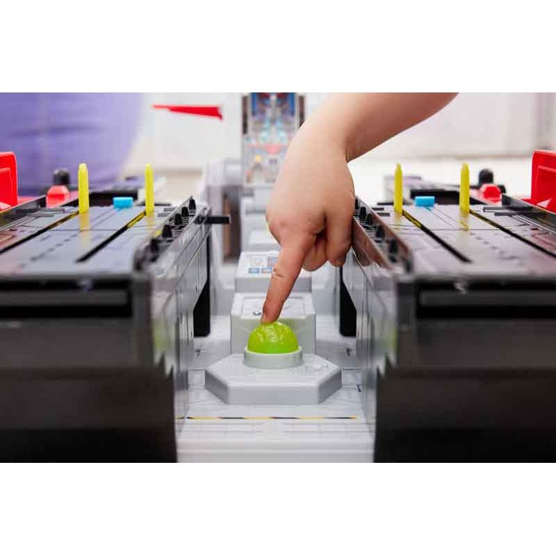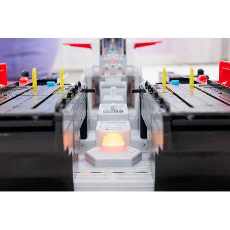 När man trycker på högkvarterets kommandocentral startar automatiskt en fantastisk förvandling som lyfter kontrollrummet uppåt och delar upp däcket i 2 separata ramper för uppskjutning av fordon.