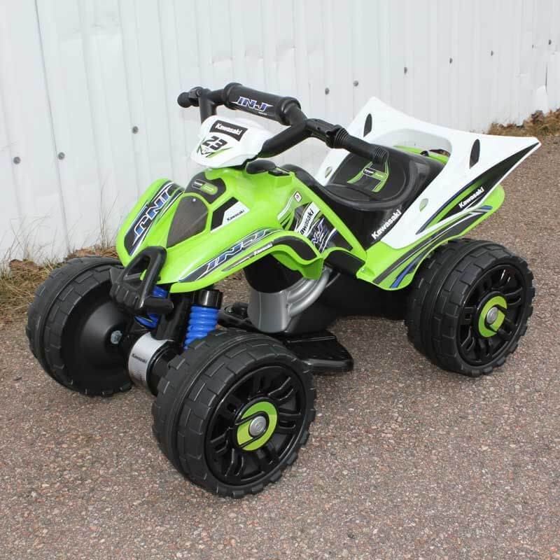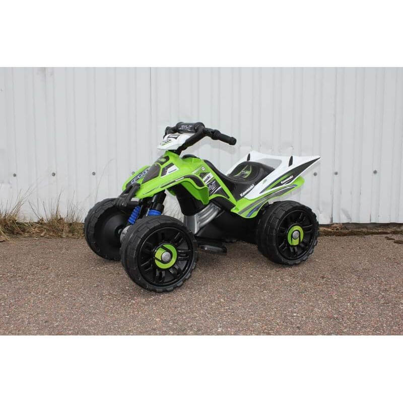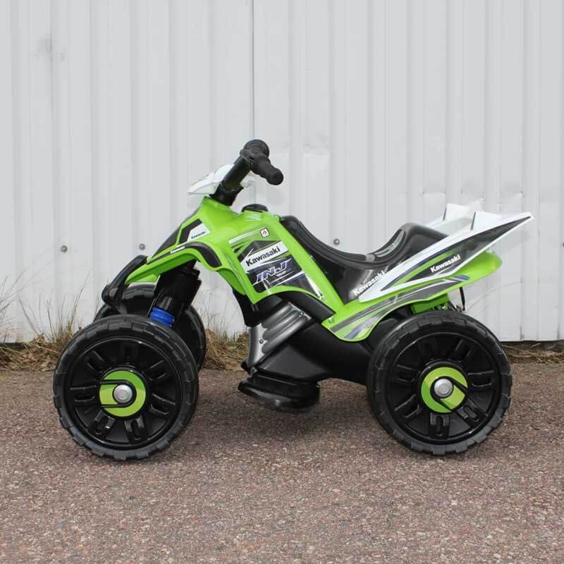 Elfyrhjuling Kawasaki Injusa till barn, en superfräck fyrhjuling i fräck design med fina dekaler. Kawasaki, är ju även ett av världens mest kända fabrikat inom fyrhjulingar och motorcyklar.