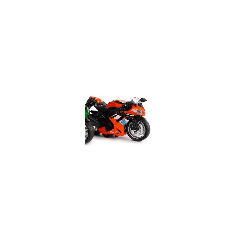 Leksaksmotorcykel med pullback. Med Pullback-Funktion blir det extra roligt, dra den bakåt och släpp så åker den framåt. Motorcykeln som finns i tre olika färger, grön, blå och orange. Vilken färg man får blir en rolig överraskning. Längd: 11 cm