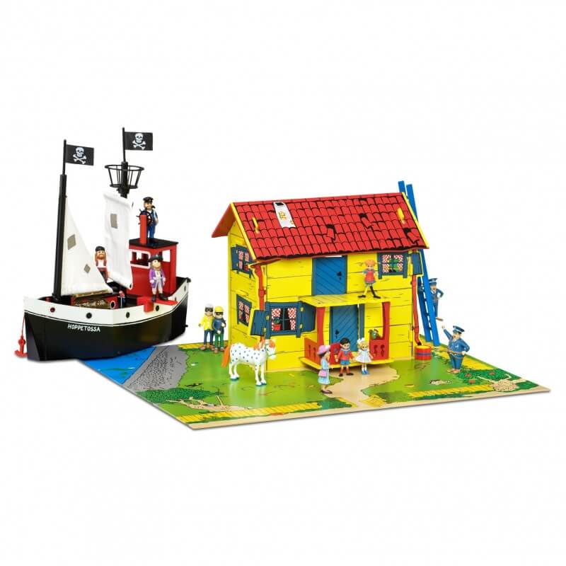 Dockhuset Villa Villekulla och en rolig lekplatta med Pippis trädgård på ingår i detta fina set från Micki.