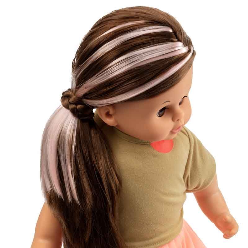 Fantasifull lek finns alltid nära till hands med Skrållan. Skrållan har en tröja med neondetalj, en tyllkjol och rosa fina slingor i håret. Hennes långa, mjuka hår är av hög kvalitet och går lätt att borsta och fläta. Skrållan är en 45 cm stor taldocka.