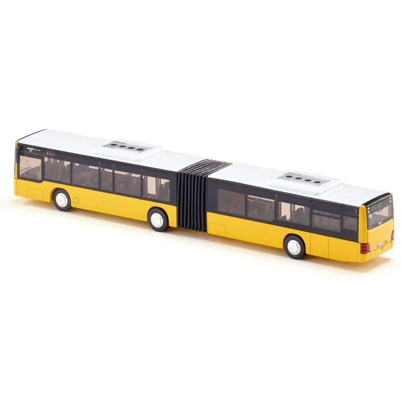 Denna leksaksbuss är en modell av MAN Lions city buss.Dörrarna på bussens högra sida är öppningsbara och så även motorhuven baktill.