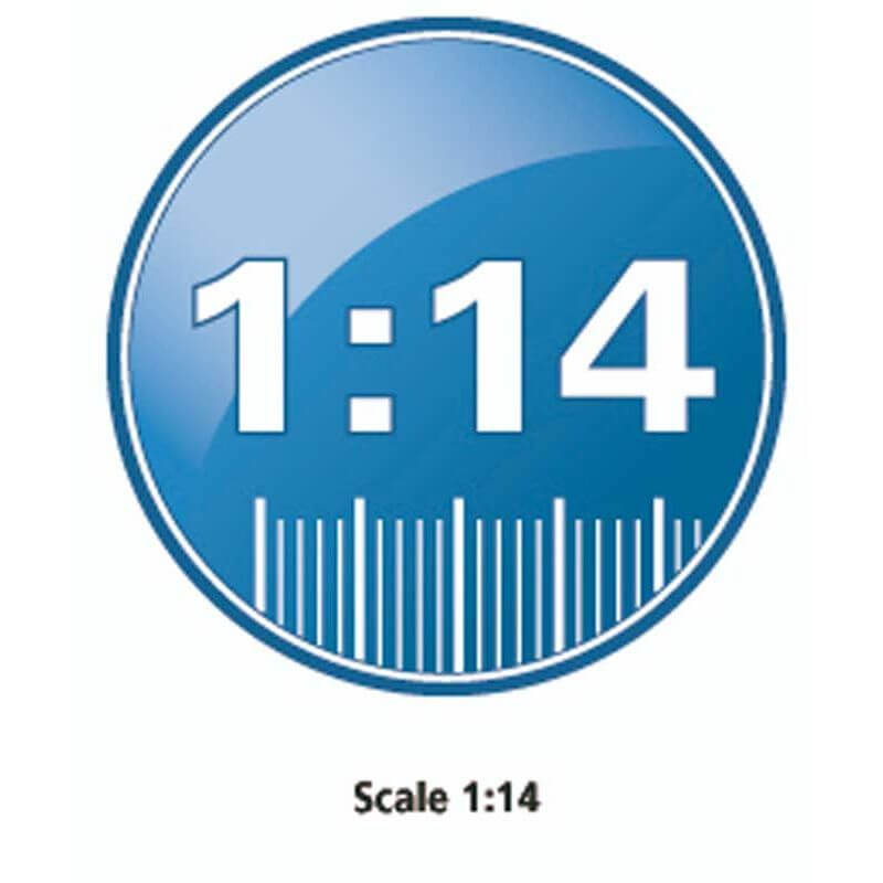 Skala 1:14 vilket innebär att bilen är 14 gånger mindre än den riktiga bilen.