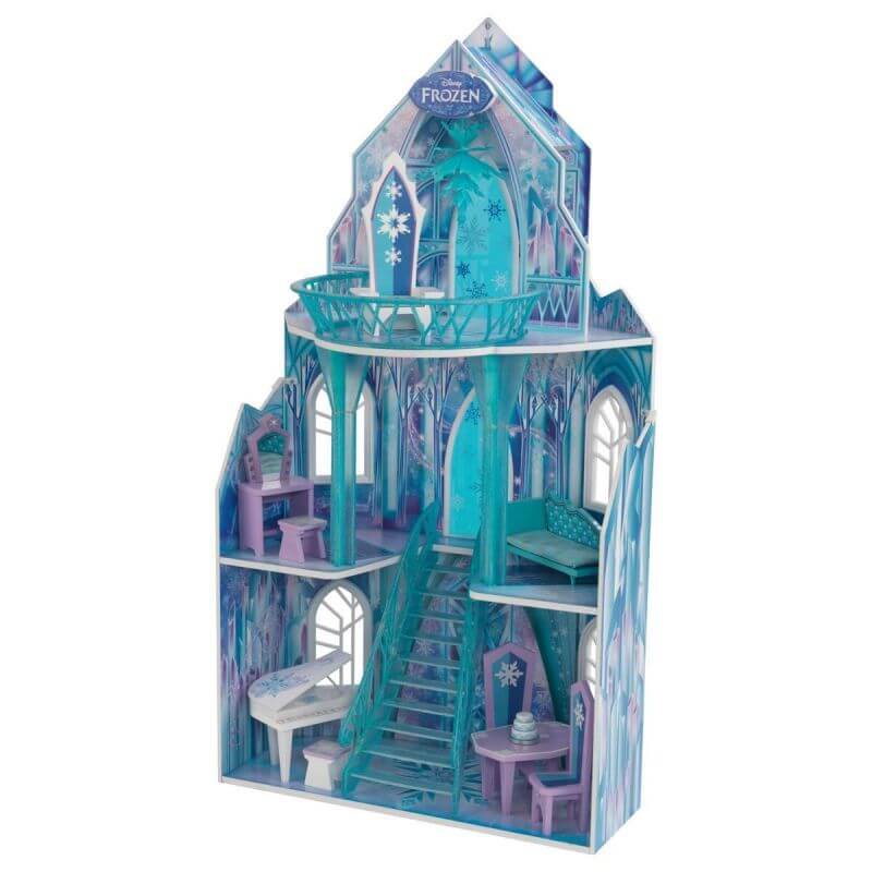 KidKraft Dockskåp Frozen Dollhouse Limited Edition, ett jättestort och vackert dockhus i form av ett ispalats direkt inspirerat från Disney-succén Frost! Här kan barnen spela ut sina favoritscener från filmen och låta kreativiteten och fantasin flöda. Dockhuset består av tre våningar med fyra olika rum, en stor vacker trappa i mitten och en härlig, gigantisk balkong högst upp.