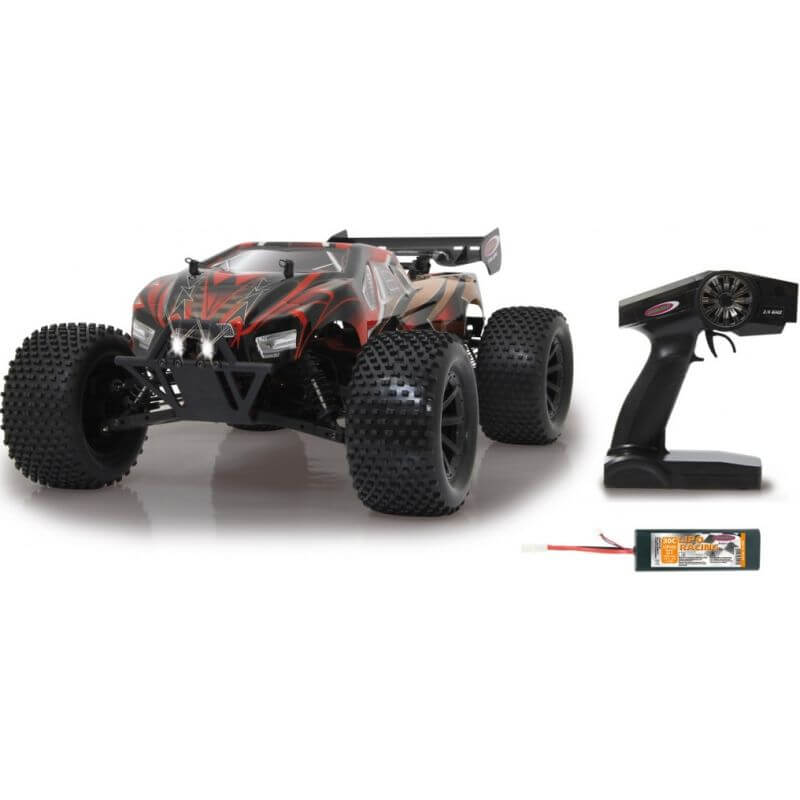 RC Brecter Truggy Monstertruck Jamara, en superhäftig och rejäl radiostyrd monstertruck för både barn och vuxna. Detta fordon är av högsta kvalitet som alltid från Jamara, en av världens mest kända tillverkare av radiostyrda leksaker. Med häftig design i svart och rött och mängder med fräcka detaljer och funktioner kan man ha roligt länge med den här monstertrucken.