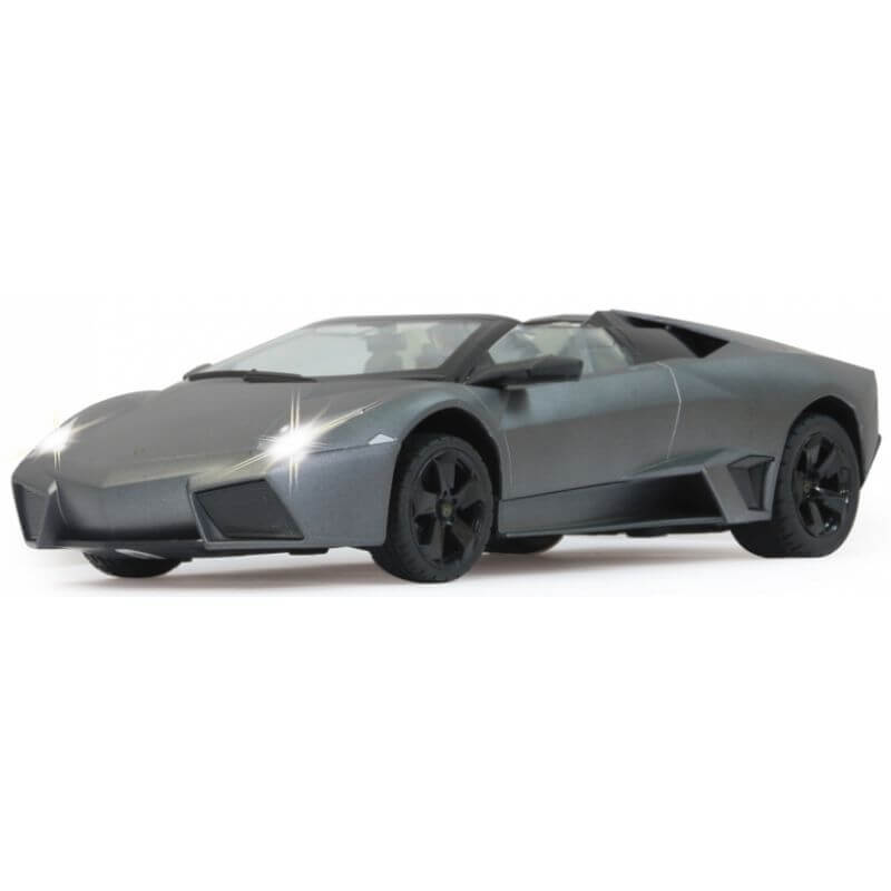 Radiostyrd Bil Lamborghini Reventón Roadster Grå 1:14 - 40 MHz, en riktigt häftig leksaksbil från kända varumärket Jamara i snygg grå nyans. Superkul både för barnen att leka med och för vuxna att ha ståendes i hyllan som samlarmodell. Bilen har lampor både fram och bak som lyser när man kör och en maxhastighet på ca 9 km/h.