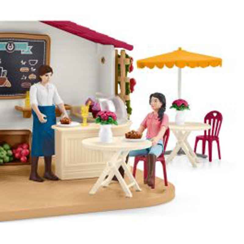 Schleich Ryttarcafé 42519, ett underbart lekset för barnens Schleich hästar och andra djur. Det är i vackra färger och med massor av skojga tillbehör. Ett måste till lekrummet :).