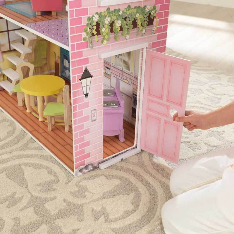 KidKraft Dockskåp Poppy ett dockskåp med en härlig retrokänsla över sig. huset har tre våningar och tre stora rum och ett badrum så dockorna har gott om plats att utforska här. Med dörrar och fönster som går att öppna blir huset dessutom ännu mer verklighetstorget och roligare att leka i. Passar dockor upp till 30 cm.