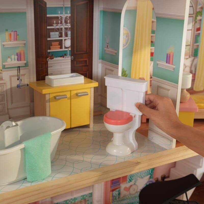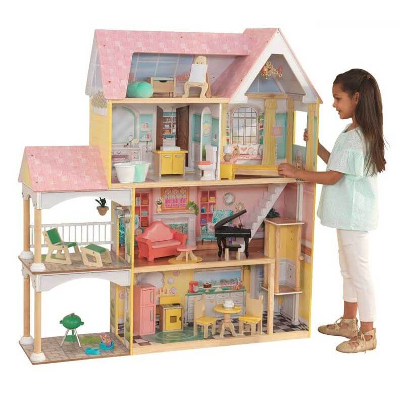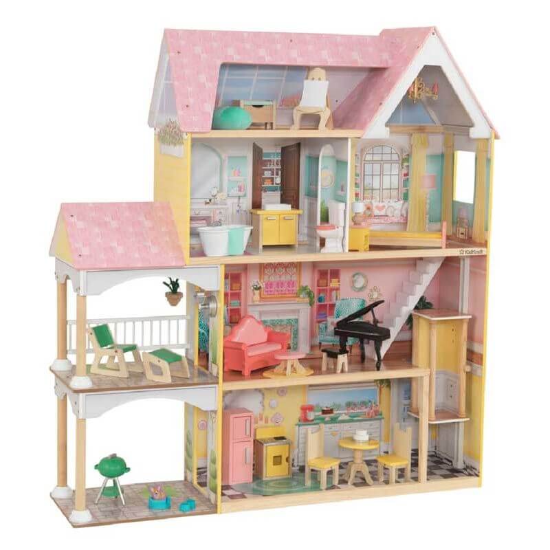 KidKraft Dockskåp Lola Mansion är ett stort och rymligt dockhus som ger barnen det lilla extra i leken. Med sina fyra våningar, 5 stora rum, en terrass och en rymlig bilparkering så har barnen möjlighet att skapa oändliga fantasifulla berättelser med sina dockor i det här huset.