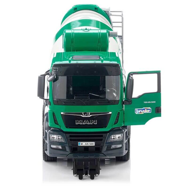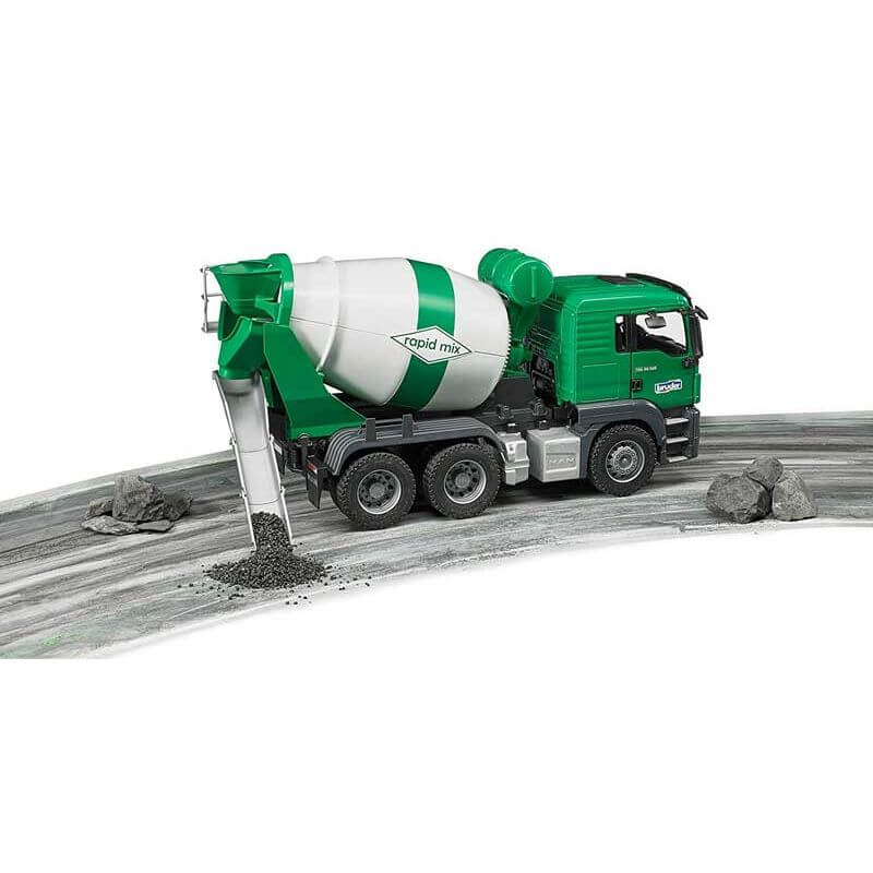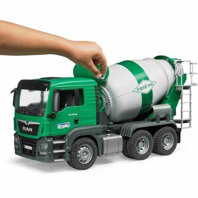 Bruder MAN TGS Cementblandare 03710 är en superrolig leksak för den lille byggarbetaren där hemma, den har massor med roliga funktioner så som att cementbehållaren snurrar med hjälp av en vev, dörrarna går att öppna.