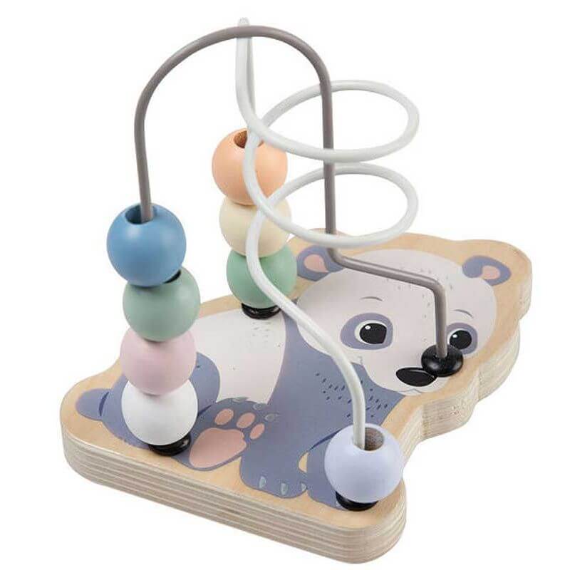 Kulbana leksak Panda Jouéco, en söt kulbana med tryck av en panda. Med den här kan de yngre barnen få ha riktigt roligt samtidigt som de får möjlighet att utvecklas på flera sätt. Den har två banor med 8 kulor i fina färger. Höjd: 14 cm.