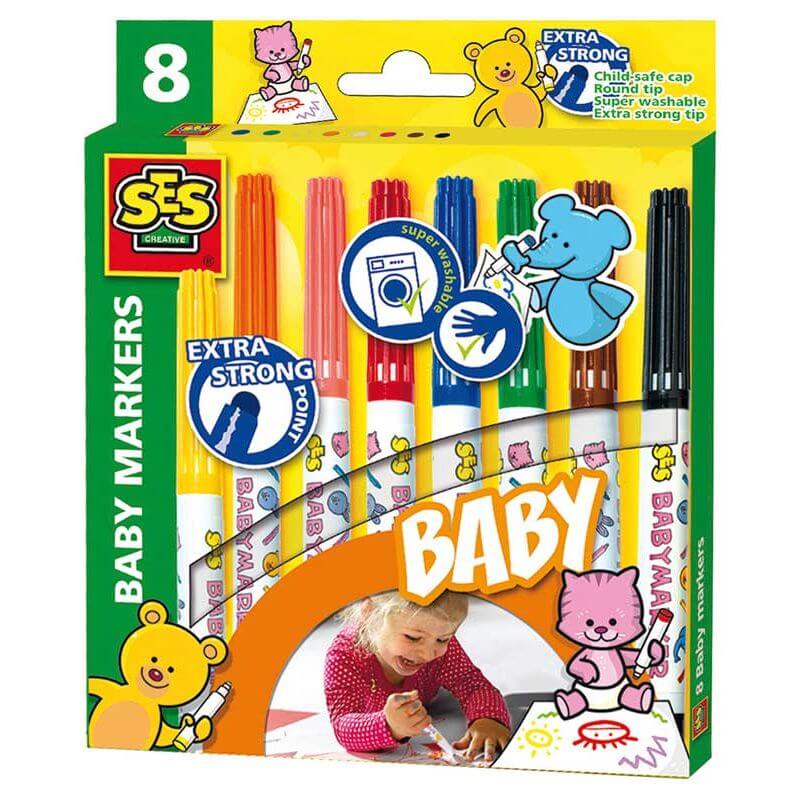 SES Babyfärger, här får man 8 st. fina färgpennor, barnpennor i ett barnsäkert och hållbart pennfodral. Dessa färgpennor är speciellt framtagna för barn och kan lätt tvättas bort med lite vatten.