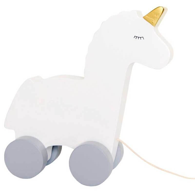 Jabadabado Dragdjur Enhörning, en supersöt liten enhörning som kan följa med dig vart du än går, en extra rolig leksak för de små barnen som precis lärt sig gå. Vem vill inte ha en liten enhörningskompis hemma som kan följa med på promenader. Enhörningen är vit med ett guldhorn i pannan och små söta ögonfransar, den har stora rejäla hjul som gör att den kan ta sig fram enkelt där du går. Greppa snöret och ta med dig din nyfunne vän på äventyr, tillsammans kan ni upptäcka världen.
