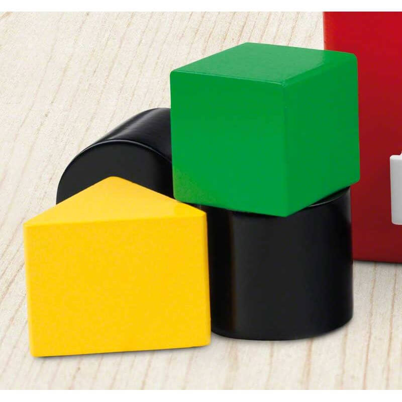 Det medföljer 6 klossar av våra vanligaste geometriska former att placera i lådan. Plocklådan hjälper små barn att träna på färger och former, även motoriken och koordinationen mellan öga och hand utvecklas under lekens gång.