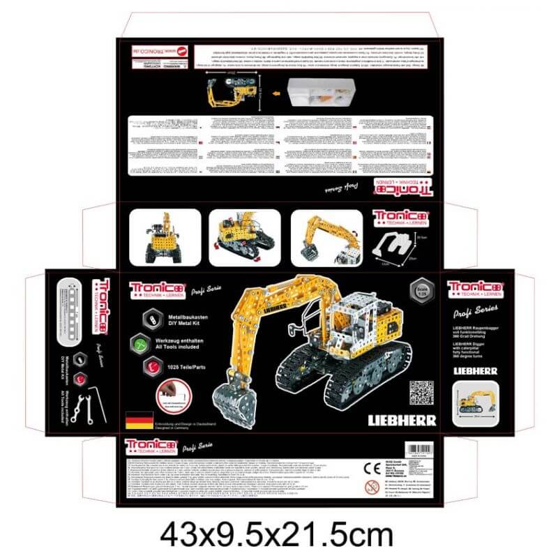Grävmaskin Liebherr Byggmodell Metall 1:25 Tronico, bygg din alldeles egen grävmaskin med detta roliga gör det själv kit från Tronico. Med detta kit kommer barnen kunna utmana alla sina sinne och förmågor samtidigt som de har roligt och får en känsla av självständighet när de får bygga sin leksak själv.